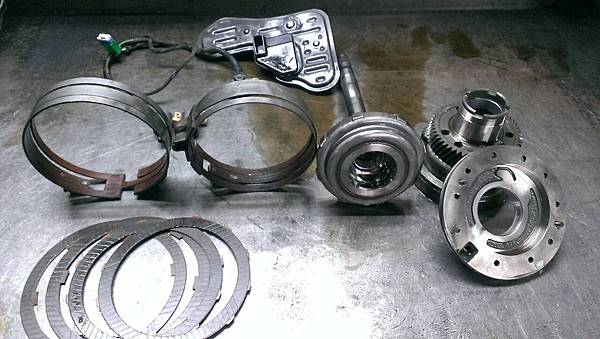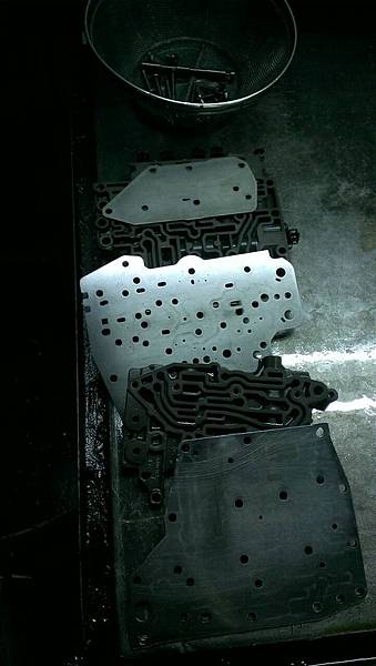 圖上.倒車檔制動帶磨損.油壓電磁閥還是舊版. 圖下.油控盤分解清洗.