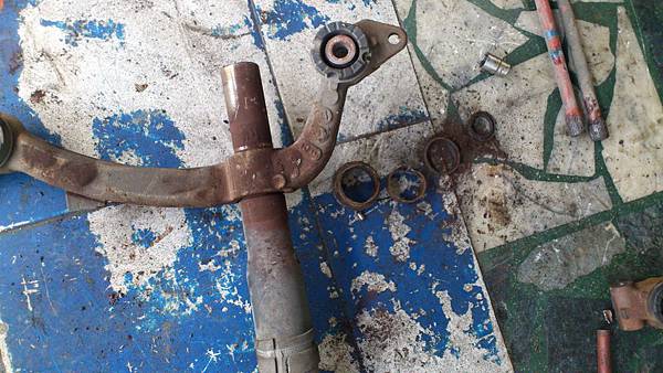 左後輪懸吊臂取下.後擔磨損吃溝.