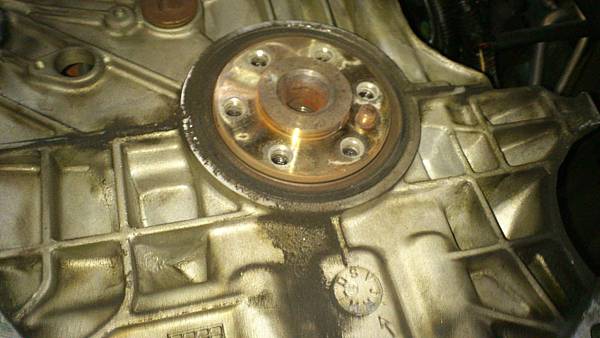 引擎側的曲軸後油封有滲漏現象.更換掉油封.