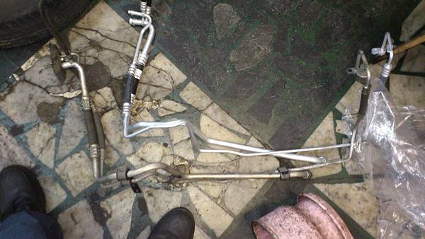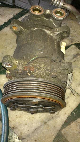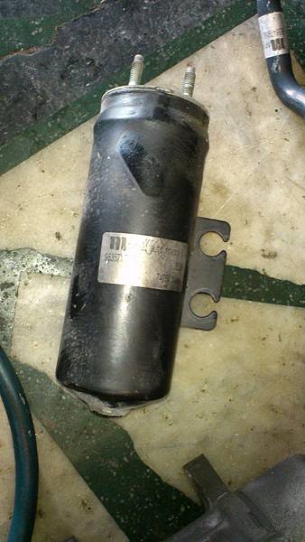 這是冷媒的乾燥瓶.目的是過濾冷媒中的水份.新車到現在都沒有更換過.在這次開放冷氣管路的同時一併更換掉.
