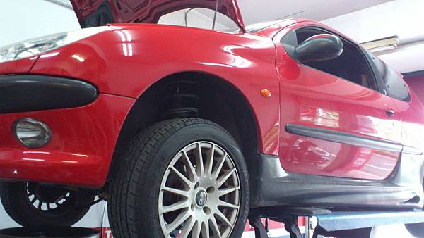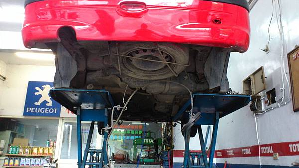 寶獅206車主購買不到一星期的代步車.從楊梅開上來檢查與施工.會同車主路試時.感覺整個後底盤是鬆散異音嚴重.不平路金屬撞擊聲.平路旋轉摩擦生.