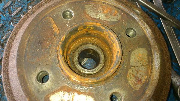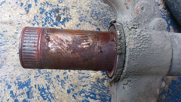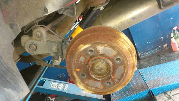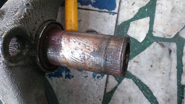拆卸後輪.映入眼簾的輪軸承外蓋.已經被拆了N次.爛到還黏矽力康還是有進水的現象.