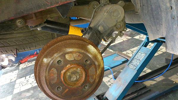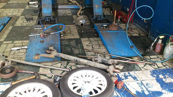 整支後橫樑軸拆卸下來.拆卸過程可以感受到.之前的修理廠有用一些旁門左道的方法處理異音.但是都沒有捎到癢處.
