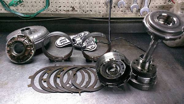主要損壞零組件.Pump 內部軸承磨損.前進檔制動帶過熱.倒檔制動帶磨損.已磨到制動轂.4檔離合器片過熱.行星齒輪軸承磨損.輸入軸軸承磨損.扭力轉換器內部損壞.