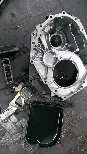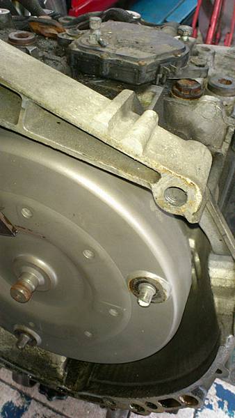 我以為我是第一次拆這顆變速箱....扭力轉換器有人翻修過.外表還很新.