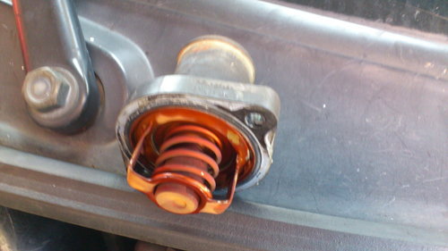 回來拆下節溫器檢查.已經被更換過71度低溫的.可能壞掉了.更換一顆新品上去.水溫不再那麼高了.