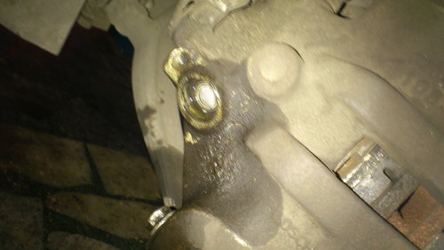 頂起車身檢查發現.左前煞車束緊器上的螺絲處.嚴重漏油.這顆螺絲很特殊是5角型.