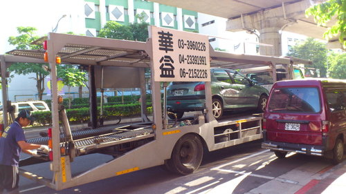 圖上是206已經載運到達的車輛運輸車下貨中.