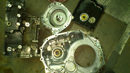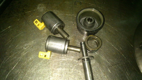 左邊是主油壓電磁閥.一律更換掉.右邊是制動帶的活塞.比較特殊的是一拆卸整個自動分家散掉.
