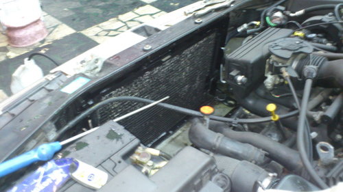 拆卸水箱順便把冷氣散熱片給清洗乾淨.這樣對冷氣冷度會有幫助及散熱風扇轉高速的機率也比較少.