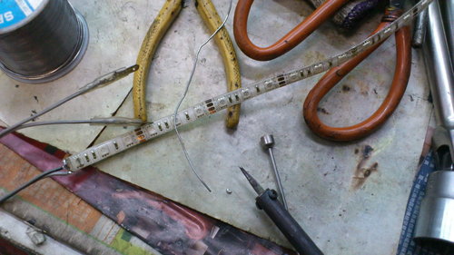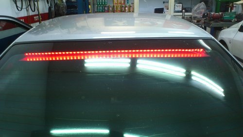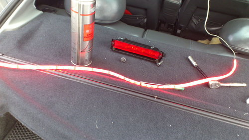 現代的車第三煞車燈都是用LED.買整捲LED燈條來製作.一顆裡面有三個亮點.