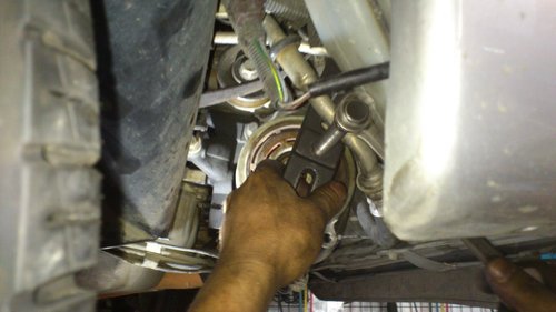 經過一番檢查後.聲音來自冷氣壓縮機的皮帶盤軸承.
