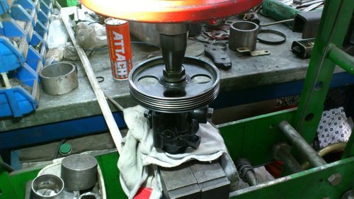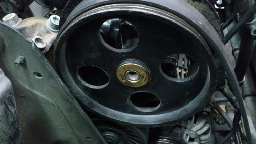 這是同行開過來委修.店家已經把原車漏油的液壓幫浦更換整理品.但是.只要引擎一運轉綜合皮帶就會脫槽.
