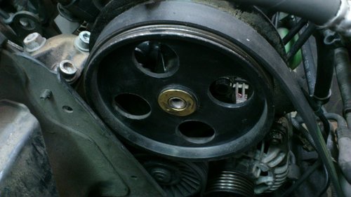 6槽的皮帶只剩4槽抓住液壓幫浦皮帶盤.店家重新放鬆皮帶調整回來一樣.換一條新的皮帶還是一樣.店家怕長期讓車主使用會拋錨故障.開來找小店幫忙處理.