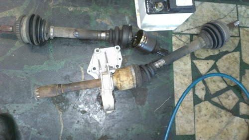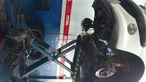 比較長的是右側傳動軸.在車上拆不下來.所以.連中下引擎腳一起請下來.