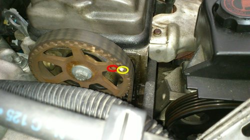 機油抽掉回標準上限後有一點改善.但還是無力.檢查正時皮帶發現做了很多記號.重新對正一次" 賓果 "