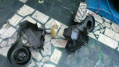 暖氣熱水箱也有一點滲漏引擎冷卻水一起更換掉.避免改天大量滲漏又要再拆一次風箱.或是暖氣熱水管被閹掉沒辦法調整冷氣溫度.