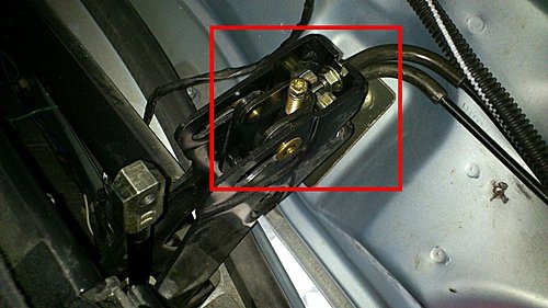 後蓋扣油壓拉索磨損脫落.拉索原來要穿過下方油壓桿座的小洞.