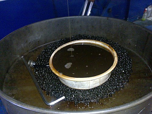 車主在11萬多公里時在原廠更換過三次自排變速箱油.這一次洩放下來的油還是非常的髒.而且油中還有金屬粉墨.在工作燈照耀下閃閃發亮.