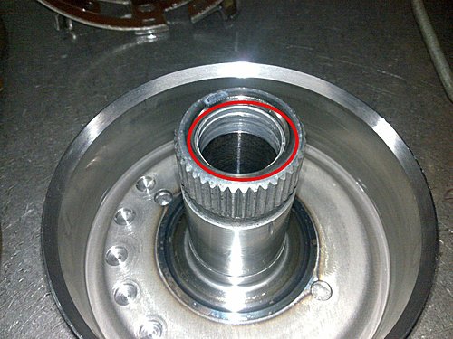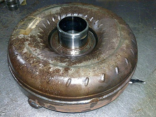 映入眼簾的是扭力轉換器.這一顆外表看不出所以然來.需要用車床車開焊點.檢查內部零組件及更換內部的離合器片及單向軸承.