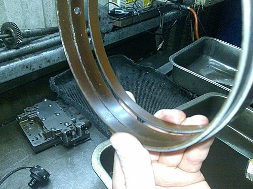 這是過熱焦化的制動帶需要更換掉.底下在鐵網左邊的是油控盤.原廠一個要價5萬多元.車主還沒來找我之前.