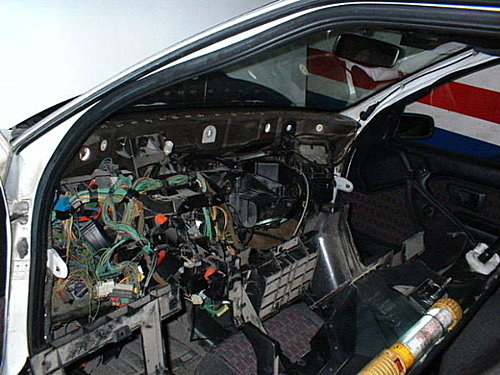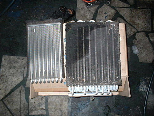 右邊就是冷氣系統的風箱仁(蒸發器).藏在儀表板內.濕濕的位子就是漏冷媒的現象.你看風箱內多髒.