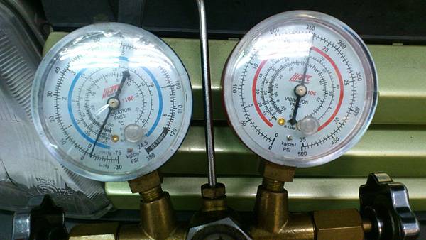 加壓測漏.抽真空加冷媒.發動引擎開冷氣.表壓問題解決.但是.換高壓太高無法降下來.