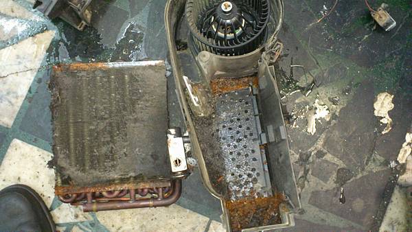 風箱分解開來.OMG.....20幾年了.其髒無比.生鏽.滲漏.飛塵.污漬.黴菌.異味.一家大小呼吸的空氣全經過這裡.