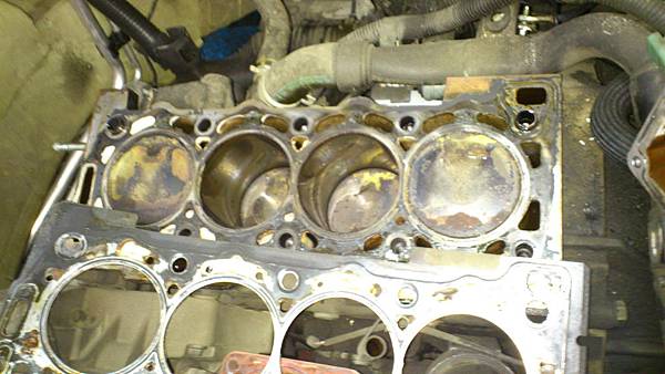 引擎副水箱水很容易倒噴溢出.冷卻系統有洩放不完的空氣.造成氣阻現象.表示汽缸頭變型汽缸床沖毀.
