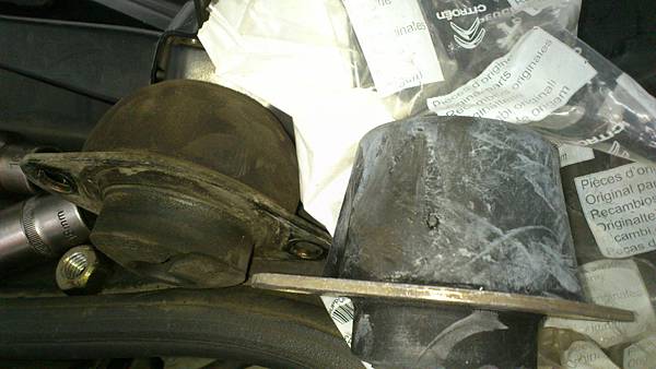 變速箱腳座濫到爆.圖右是原廠新品比較.