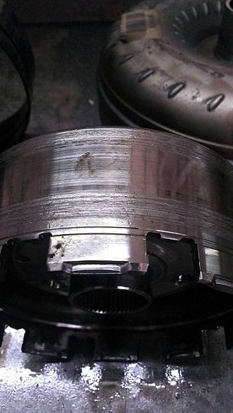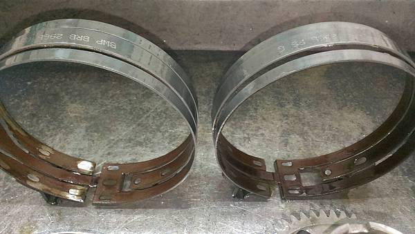 前進檔制動帶嚴重磨損.倒車檔制動帶熱焦化.