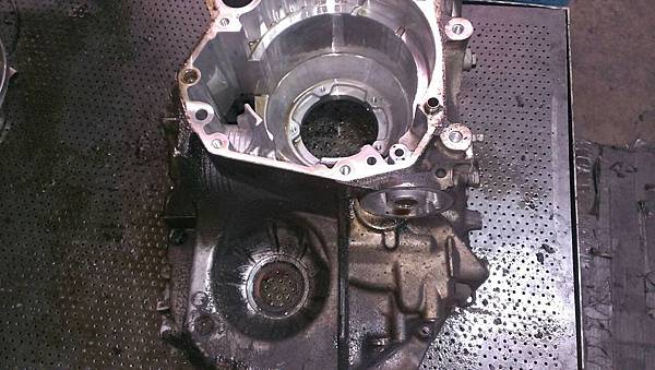 再來看變速箱這一邊.分解開的變速箱外殼清洗.