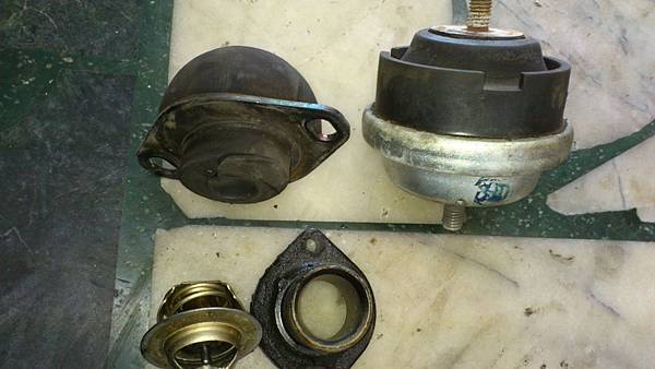 更換下來的引擎腳座及節溫器.