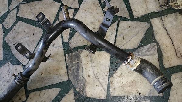拆換下來不良的引擎後水管.