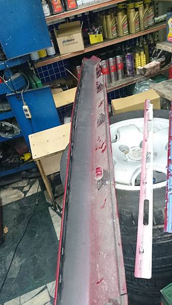 想辦法幫它固定燒焊上去.再把變型的飾板校正一番.後送烤漆改天過來安裝.