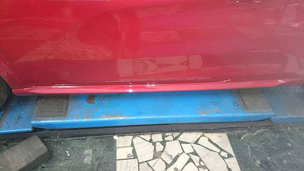 寶獅208 GTI手排.右側側裙撞變型.車主已經在原廠轉一圈.國內還沒有進口側裙料件可以更換也非常的高貴.