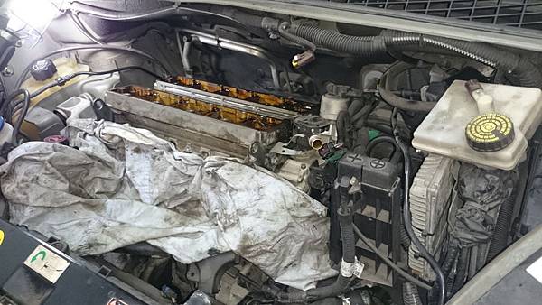 打了很久的啟動馬達才發動了.發動後.引擎抖抖抖...正時皮帶處喀拉喀拉響.