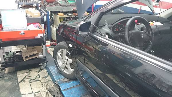 寶獅206 1.6 16V第一次從木柵區拖吊進場.拖吊的原因是變速箱排檔桿磨損卡住在N檔.無法移動排檔桿.