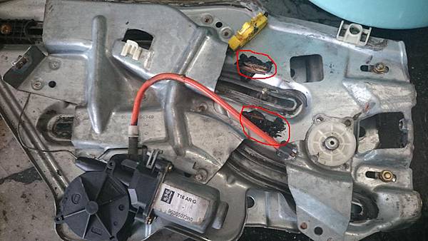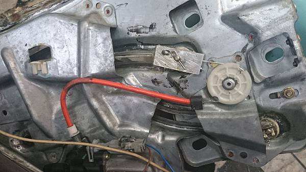 中古車行已經請修車廠拆卸下.原先.車廠是用木頭加矽利康固定後三角窗升降機.等於廢了升降機.