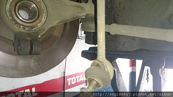 兩支防滾連桿球接頭磨損.底盤不平路異音很大聲.更換掉.