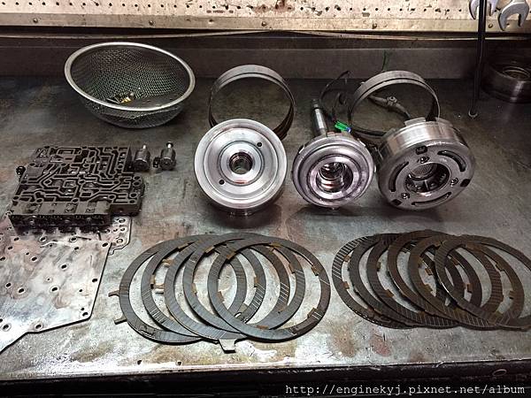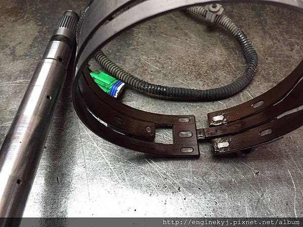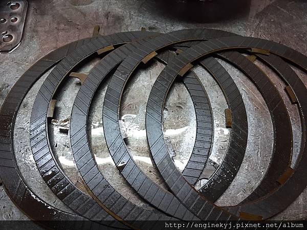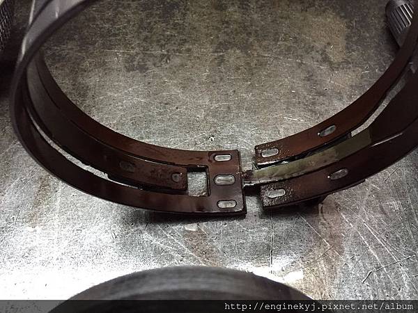 有問題的零組件.前進及倒車檔制動帶磨損嚴重.傷到制動穀及行星齒輪.