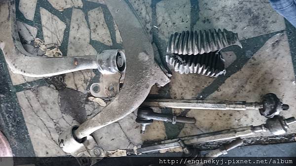更換掉2支三角架.2支方向機拉桿.方向機防塵套(天才.剪破包上去![]()