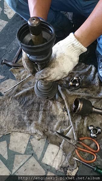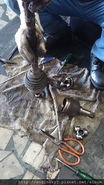 傳動軸的外半轉向接頭已經損壞.分解翻修傳動軸.