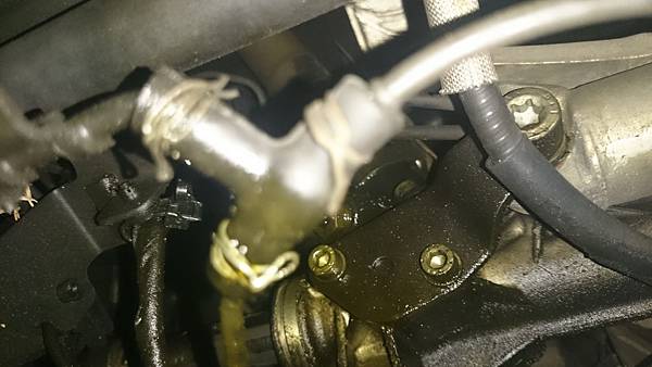 這就是右前方漏液壓油.主要是液壓幫浦漏下來的液壓油.長時間滴漏發電機也會壞掉.