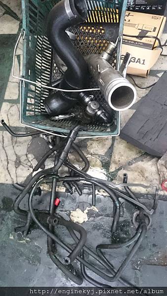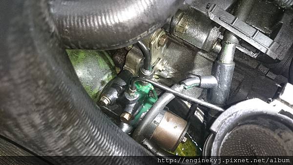 壓力調整器進油高壓油管大量噴油出來.壓力調整器回油管硬化斷裂.(拖吊進場的主因)