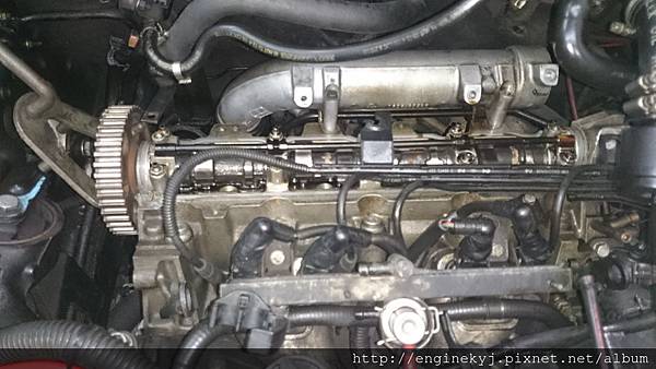 汽門蓋墊片硬化漏機油.拆卸正時皮帶更換凸輪軸及曲軸前油封.
