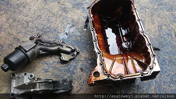 引擎漏機油的部分是油底殼墊片+機油芯座墊片老化.