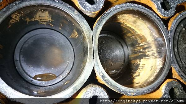 檢查引擎本體.我地天阿.....23缸的缸套破裂.活塞環咬死.14缸有沖毀滲漏壓縮壓力現象.