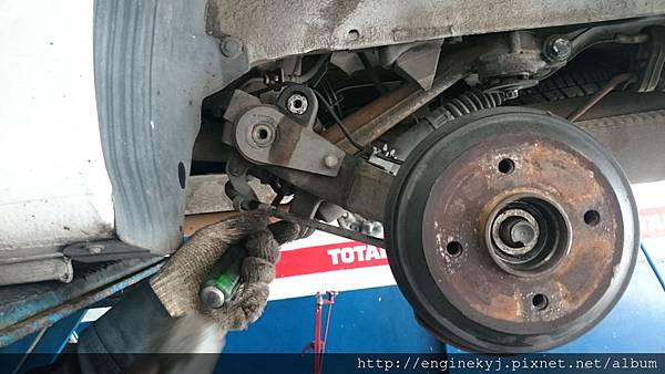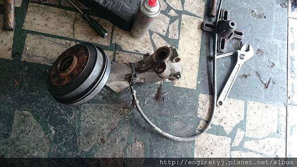 上圖是煞車鼓.中心輪軸承咬死拆卸不下來.由於.有先報價過.車主沒有意願追加預算.