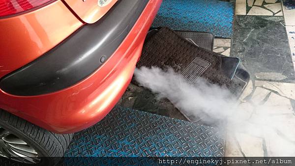 發動引擎.排氣管非常大量噴水氣出來.206瞬間變火車了.冷卻系統的水都漏進汽缸裡面.